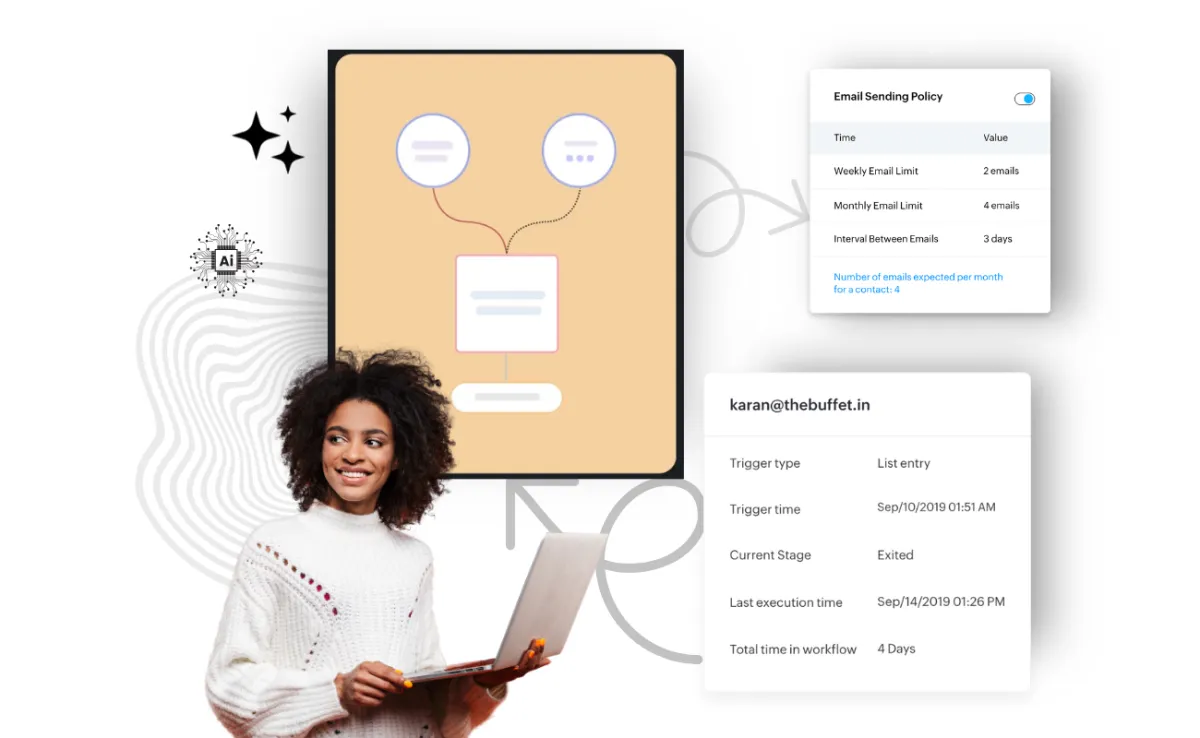 Envoyez toujours le bon message au bon moment, sans effort. Automatisation intelligente, Diffusez facilement des séries d’emails ciblés et automatisés pour engager chaque contact au bon moment.